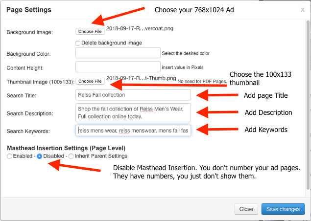 Step 4: Upload Ad Images; Add Text; Disable Masthead Insertion