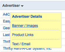 Choose an AdvertiserAt this point in the walkthrough, you'll be choosing an advertiser; you could just as easily have started with the advertiser step first.Here, we're going to look at the first advertiser (grabbing them just for speed here, not because they're a good category match, which they actually aren't), and drill into their Banners/Images as shown here: